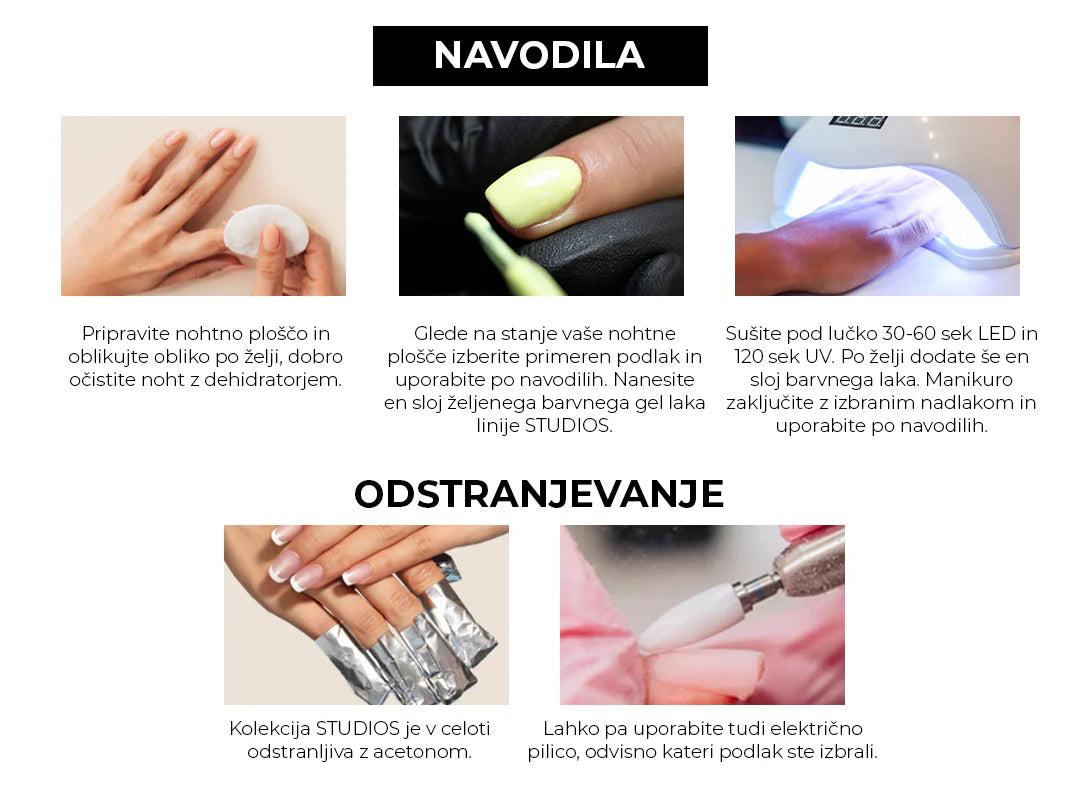 - Sušite 60s pod LED žarnico ali 120s pod UV žarnico.