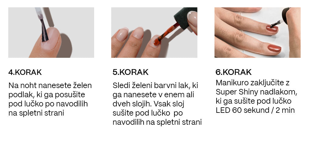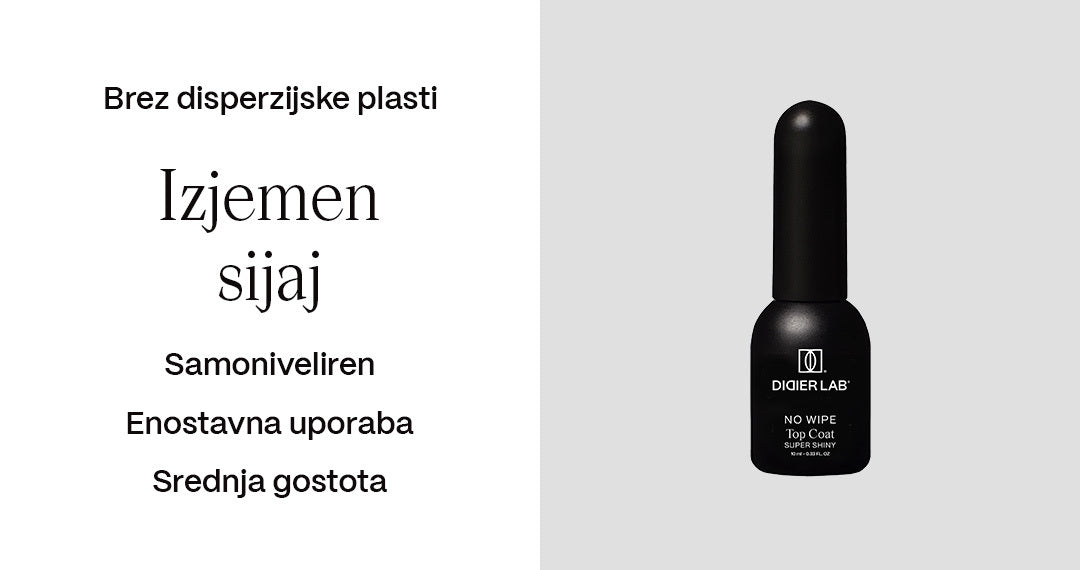 Super Shiny: nadlak nove generacije, brez HEMA in TPO sestavin ponuja še intenzivnejši sijaj in izjemno odpornost proti mehanskim poškodbam.
